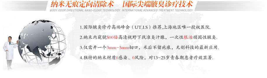 國際尖端腋臭診療技術(shù),上海地區(qū)唯一一家引進納米無痕定向清除術(shù)專業(yè)機構(gòu),獨家認證,謹(jǐn)防假冒。